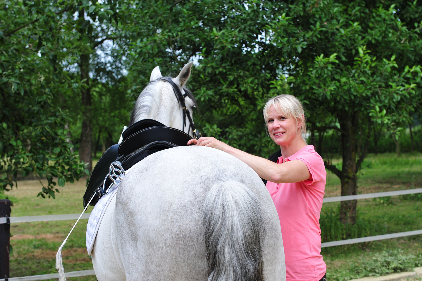 "Meine Beine liegen dicht am Pferd", lobt Anja Hass. Der sensible Galano beruhigt sich allmählich. Er hat gezeigt, wie wichtig es ist, auch einen baumlosen Sattel anzupassen.